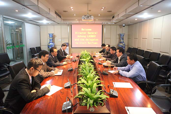 趙董事長首先對Achong Laomao局長的來訪表示了熱烈的歡迎。長期以來,集團老撾鉀鹽項目獲得了老撾總理府及各級政府的大力支持,他深表感謝。接著趙董事長向Achong Laomao局長介紹了老撾項目目前的生產建設情況并觀看了宣傳片。Achong Laomao局長對老撾項目取得的成績和發展情況贊不絕口。他說,開元集團老撾鉀鹽項目是中老兩國合作的典范工程,老撾投資總局必將大力支持,他回國后一定要到項目現場考察調研。