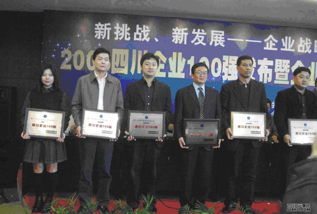 11月6日,2008四川企業(yè)百?gòu)?qiáng)發(fā)布暨四川企業(yè)發(fā)展峰會(huì)在成都市隆重召開(kāi)。四川省企業(yè)聯(lián)合會(huì)、四川省企業(yè)家協(xié)會(huì)向社會(huì)公布了2008四川企業(yè)100強(qiáng)名單,開(kāi)元集團(tuán)連續(xù)3年入圍,名列第三十二位。集團(tuán)副總裁譚昌敏代表開(kāi)元集團(tuán)領(lǐng)取銅牌。 “2008四川企業(yè)100強(qiáng)”是在四川省經(jīng)濟(jì)主管部門和中國(guó)企業(yè)聯(lián)合會(huì)的指導(dǎo)下,按照國(guó)際通行方式,通過(guò)對(duì)企業(yè)2007年度的銷售收入、利潤(rùn)、所有者權(quán)益、資產(chǎn)總額、研發(fā)費(fèi)用等指標(biāo)進(jìn)行綜合分析評(píng)選出來(lái)的。開(kāi)元集團(tuán)在銷售收入、利潤(rùn)率、資產(chǎn)總額等子榜單上,均位列川企100強(qiáng)前列。其中利潤(rùn)增長(zhǎng)率位居18位,資產(chǎn)增長(zhǎng)率位居12位。四川企業(yè)100強(qiáng)的評(píng)選,為四川省經(jīng)濟(jì)工作提供了客觀的參考依據(jù),對(duì)“工業(yè)強(qiáng)省”戰(zhàn)略和實(shí)施大企業(yè)大集團(tuán)培育計(jì)劃具有重要指導(dǎo)意義。 大會(huì)以“新挑戰(zhàn)、新發(fā)展——企業(yè)發(fā)展戰(zhàn)略轉(zhuǎn)型”為主題,對(duì)企業(yè)發(fā)展進(jìn)行了深度剖析和點(diǎn)評(píng),推出了《四川企業(yè)發(fā)展報(bào)告(2008)》,該報(bào)告對(duì)大企業(yè)大集團(tuán)的發(fā)展具有重要參考價(jià)值。(左二為集團(tuán)副總裁譚昌敏代表集團(tuán)領(lǐng)取獎(jiǎng)牌)