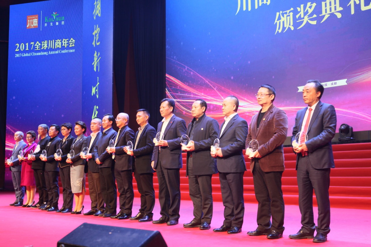 會議現場,令人矚目的“開元杯•2017(第六屆)四川杰出民營企業家頒獎典禮”隆重舉行,21位企業家分獲“2017四川杰出民營企業家年度人物”、“2017四川杰出民營企業家”、“2017杰出川商創新獎”三大獎項。作為“新常態”下大力推動四川經濟發展的四川民營企業家新標桿,積極探索,改革創新的開拓者,獲獎企業家一一登臺接受表彰,趙董事長作為首屆四川杰出民營企業家、冠名單位代表為獲得該項殊榮的優秀川商頒發了獎狀和獎杯。